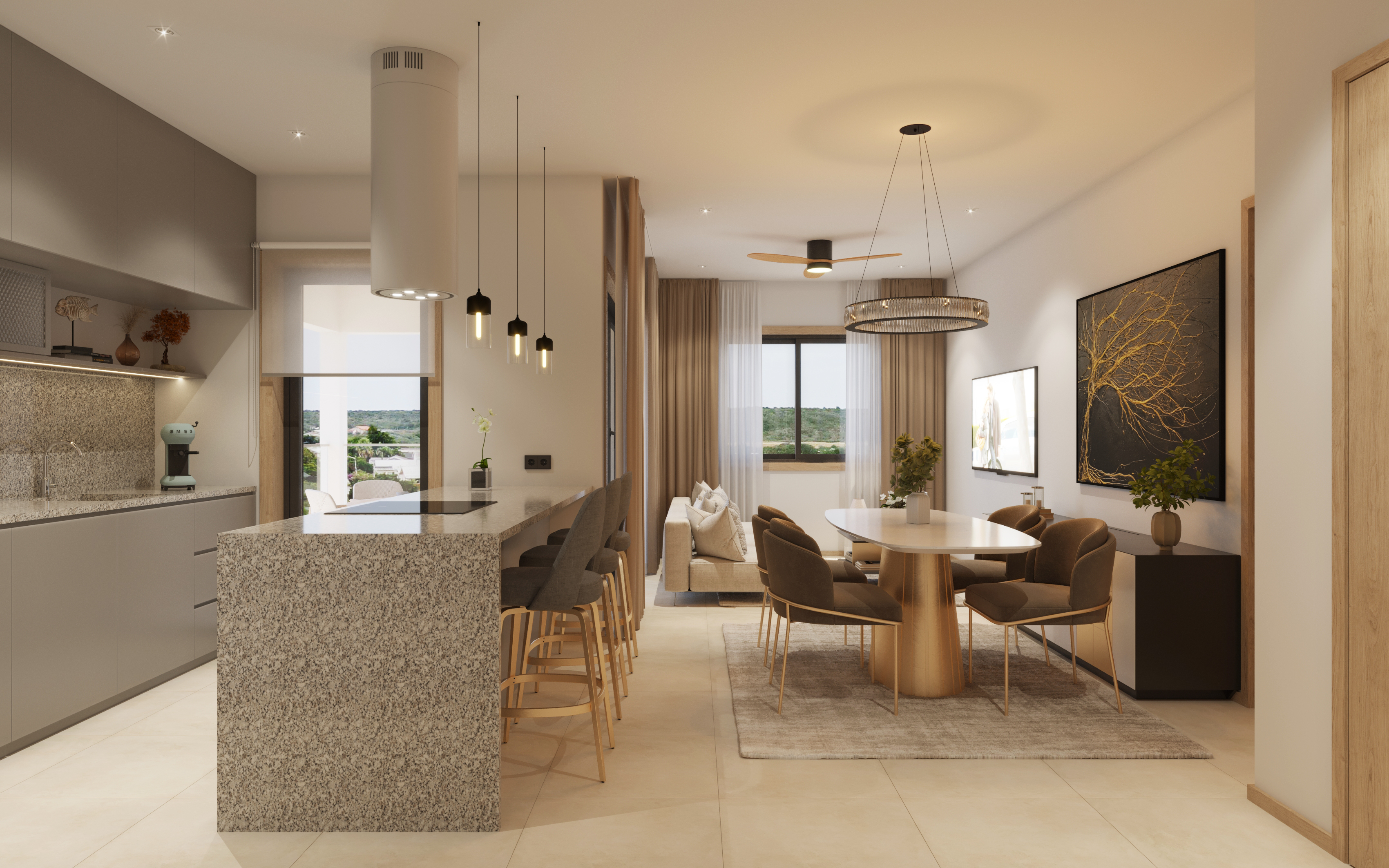 Met drie slaapkamers en een royale indeling biedt Type B de perfecte balans tussen ruimte, comfort en luxe. De ruime woonkamer sluit aan op een balkon of terras, terwijl de keuken met kookeiland en hoogwaardige inbouwapparatuur het hart van de woning vormt. De slaapkamers beschikken over op maat gemaakte kasten en iedere kamer heeft een moderne badkamer. Dit appartement is ideaal voor gezinnen of voor wie extra ruimte zoekt, bijvoorbeeld voor een kantoor of hobbyruimte.