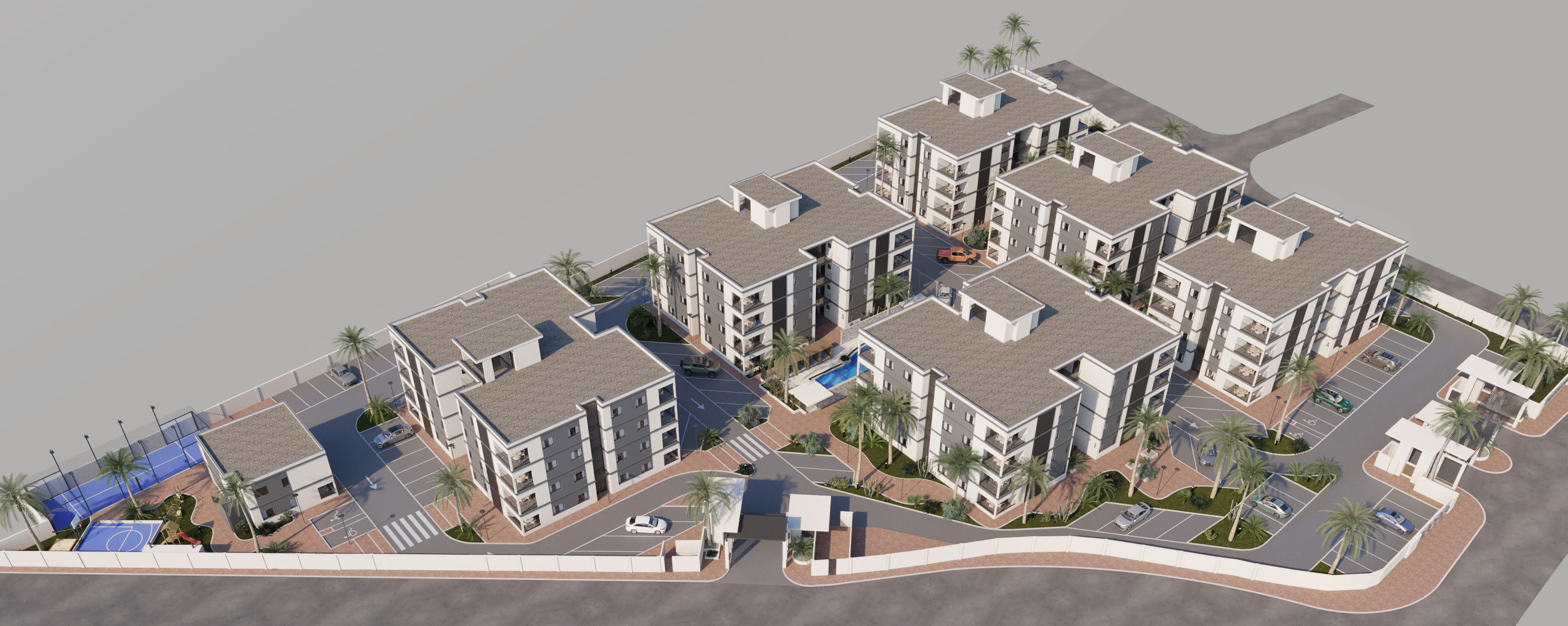 Centraal gelegen aan Kaya Andruw R.B. Jones, nabij Sentro Deportivo Kòrsou, combineert dit project comfort, stijl en duurzaamheid in eenveilige en levendige woonomgeving.