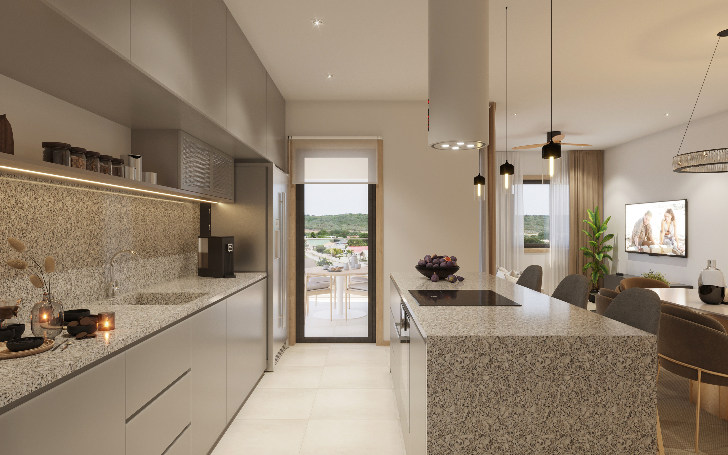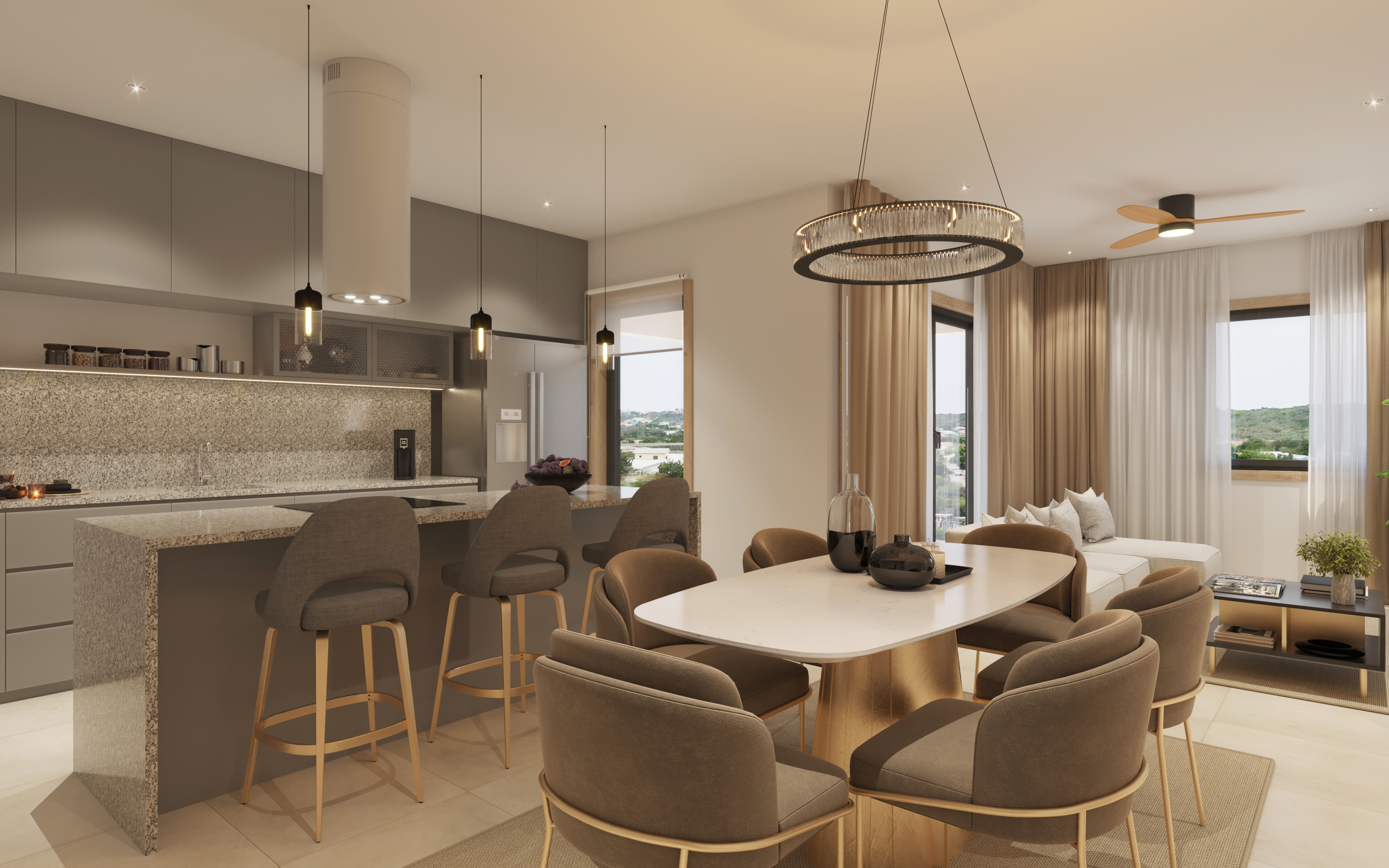 Type C is de grootste variant binnen Metro Residences en biedt vier slaapkamers, royale leefruimtes en hoogwaardige afwerking. De ruime woonkamer grenst aan de buitenruimte, perfect voorontspanning of gastvrij ontvangen van vrienden. De keuken is riant en voorzien van een kookeiland en luxe inbouwapparatuur. Met vier slaapkamers, elk voorzien van een eigen badkamer en maatwerkkasten, is dit appartement perfect voor wie kiest voor exclusief en comfortabel wonen op Curaçao.